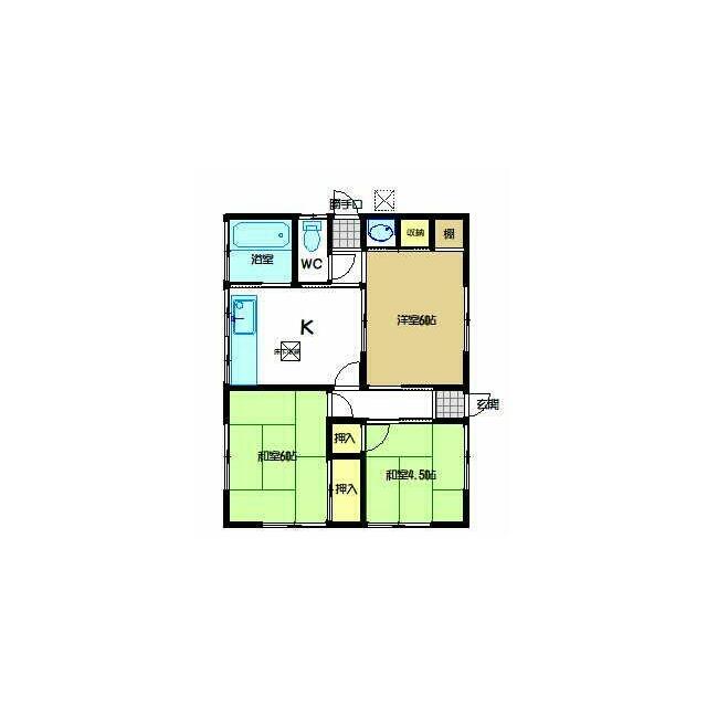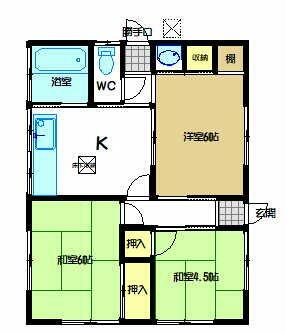 | 間取り | 3DK(和室6畳/和室4.5畳/洋室6畳) | 主要採光面 | 南 |